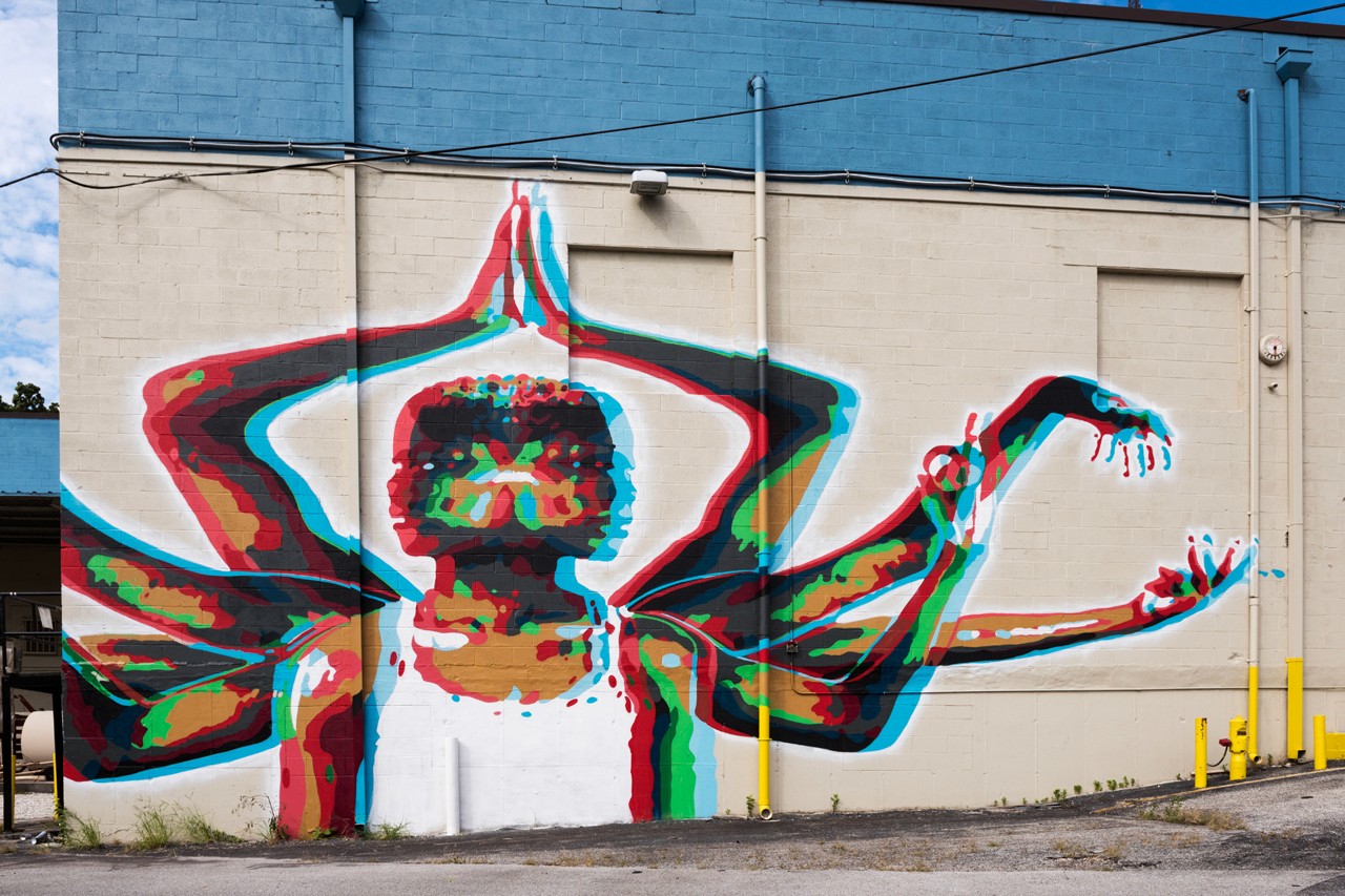 In 2014, pioneered anaglyphic 3D murals— I becoming the first artist globally to apply red/cyan stereoscopic effects to large-scale street art. The technique creates optical illusions where imagery appears to float forward from the wall when viewed with specialized glasses, transforming flat surfaces into dimensional experiences. Over a decade, painted 50+ walls across Thailand, Vietnam, Miami, DC, Baltimore and LA while serving as Baltimore's go-to artist for mural services and interior activations.